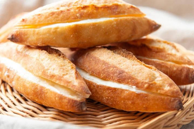 セ・トレボンの看板商品といえば、「プチミルクバゲット」。オープンから20年以上にわたり、不動の人気です。噛むほどに奥深い味わいのセ・トレボンのミニバゲットに、練乳とバターでつくった自家製ミルククリームをたっぷりサンドしています。ミルキーで優しい味わいが幅広い世代から愛されており、セ・トレボンの知名度を上げた逸品です。