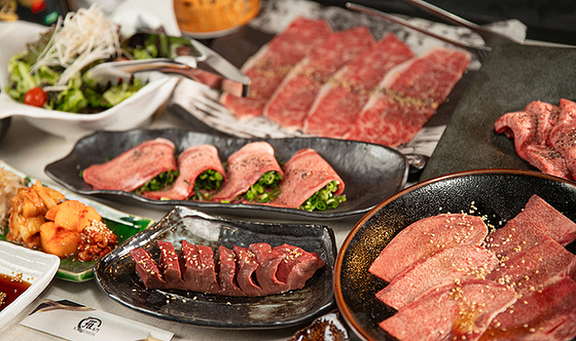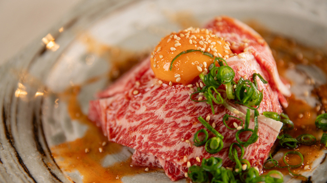 特製ポン酢&卵黄たれの2種類で味わう「特選炙りロース」、激辛にもできる自家製辛だれに漬け込んだ「タレ漬けダイヤモンドステーキ」がおすすめ。ソムリエ厳選の各国のワインも豊富に用意。店内はシック&ゴージャスな空間。