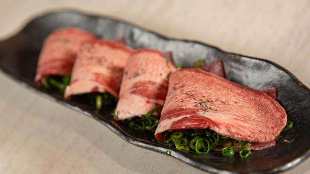 おすすめの「ねぎタン塩」は、大判にカットされた薄切りのタンに青ネギを贅沢に挟み、仕上げました。他のお店にない「ねぎタン塩」でディナーのスタートを切ってください。シンプルにレモンのみで、タン塩とねぎの味わいを存分に堪能でき。4カットor6カットにて人数に合わせてオーダー可能です。