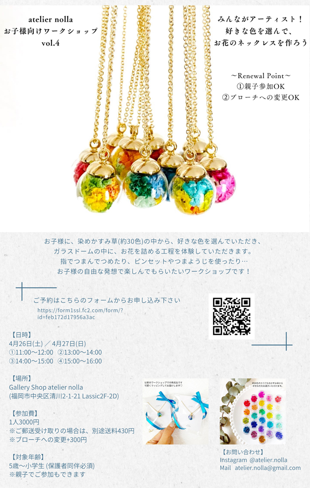 4月26日(土)~4月27日(日)にお子様向けワークショップ「みんながアーティスト!好きな色を選んでお花のネックレスを作ろう」を開催。
