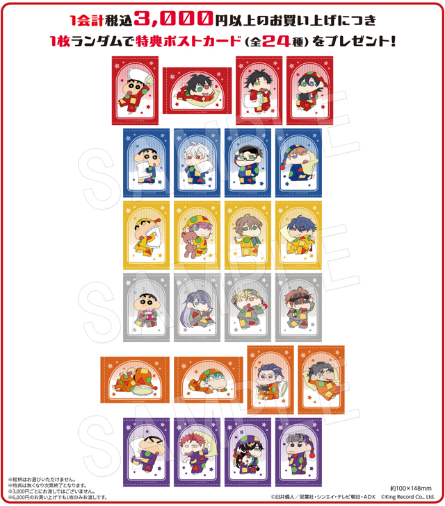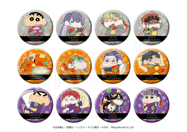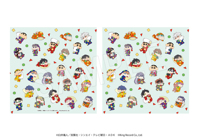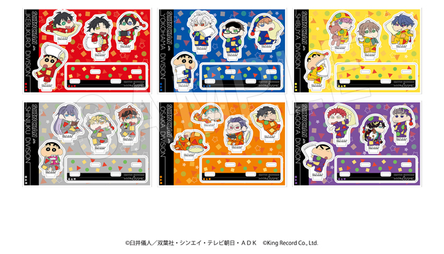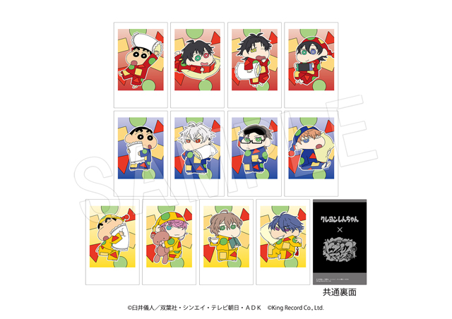 しんちゃんと『ヒプノシスマイク』のメンバーが、各ディビジョンカラーのパジャマ姿に着替えた可愛い描き下ろしイラストを使用した「アクリルスタンド」や「ポラショットコレクションスタンド」、「スクエアクッション」など新作グッズが多数登場します。
