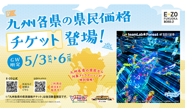 GW期間の2025年5月3日(土・祝)~5月6日(火・休)は、九州各県に在住の方限定で、GWでもE・ZOを特別価格で楽しめる九州各県の県民価格チケットが登場します!