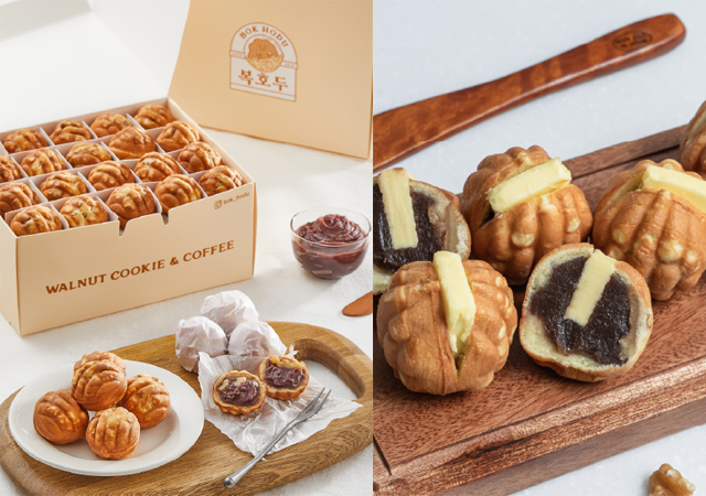 ホドゥクァジャは、ふんわりとしたカステラ生地に甘いあんこと香ばしいクルミを包み、クルミの形に焼き上げた韓国の伝統的な焼き菓子です。