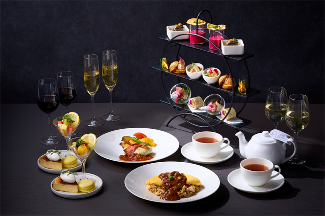 ホテルJALシティ福岡 天神では、イギリス発祥のハッシュドビーフをアレンジした「オムライス ハッシュドビーフソース」はじめ、3種類のメインディッシュから選べる『イブニングハイティー』を用意。