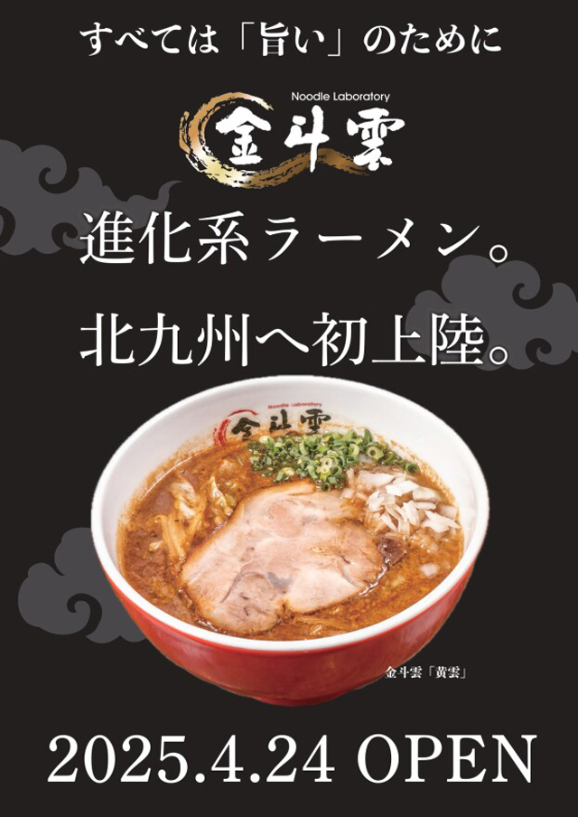 2025年4月24日(木)「Noodle laboratory 金斗雲 イオンタウン黒崎店」(北九州市八幡西区西曲里町3-1)がオープン!営業時間は10:00~24:00(毎週水曜日 10:00~21:00)。