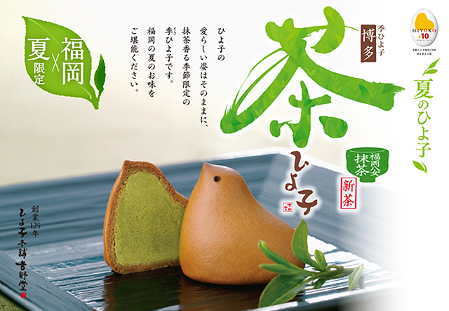 ひよ子の愛らしい姿はそのままに、こだわりの素材でつくり上げた夏限定のひよ子です。新緑の風を運ぶ、夏の季(とき)ひよ子「茶ひよ子」。