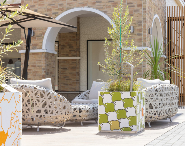 作品デザインの詳細は、作品に添えられたキャプションや施設HP(後日公開予定)からも確認が可能です。さらに、プランターの素材の一部には、リサイクルタイルや、廃棄されてしまう余剰タイルをアップサイクルした素材等を使用し、長く残り続けるアートの表現にエシカルな要素も取り入れています。