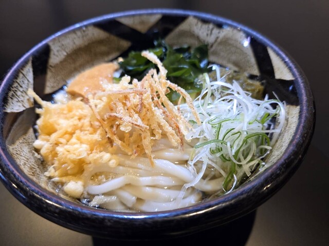 麺屋こみやの山芋ぶっかけうどんは、職人技の光る一杯。もっちりとしたコシのあるうどんに風味豊かな山芋をたっぷり絡めることで、独特のとろみと旨味が楽しめます。
