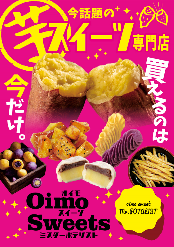 天神TOIRO TOIRO-BOX 2F(福岡市中央区天神2丁目11番3号)に、2025年5月7日(水)~5月13日(火)10:00~20:30、オイモスイーツ専門店「Mr.POTALIST(ミスターポテリスト)」が期間限定で登場。