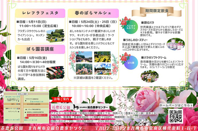 2025年5月10日(土)~6月1日(日)9:00~17:00、花農丘公園(北九州市小倉南区横代東町1丁目6-1)にて「春のばらフェア」が開催されます。