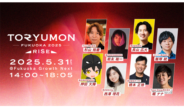 2025年5月31日(土)に開催される、U25世代向けスタートアップイベント「TORYUMON FUKUOKA 2025 RISE」の全コンテンツ及び全登壇者が決定しました。