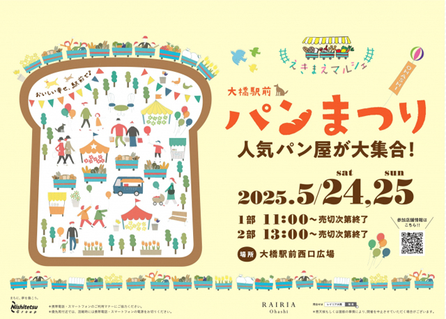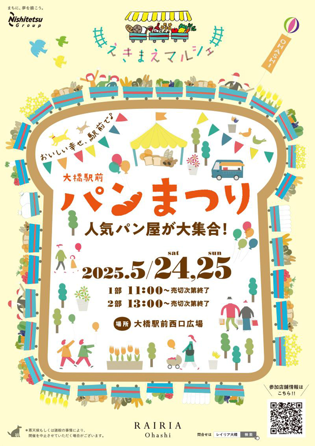 福岡の人気パン屋が一堂に会するイベント「大橋駅前 パンまつり」が、2025年5月24日(土)、5月25日(日)西鉄大橋駅前西口広場で開催されます!