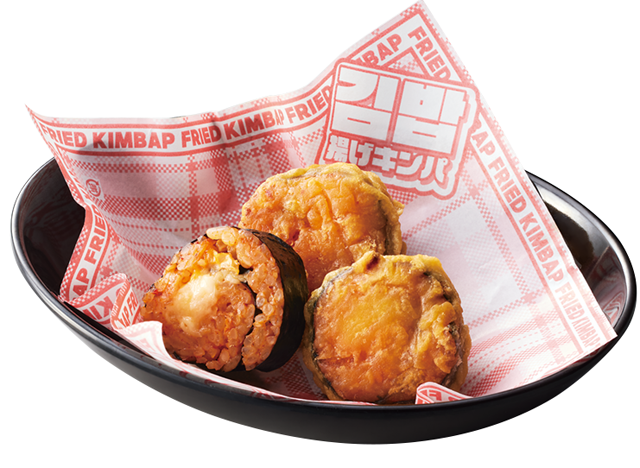 韓国の伝統的な海苔巻きのキンパを、『焼肉きんぐ』風にアレンジ。キムチチーズキンパに衣をつけて揚げました。ごま油が香る熱々のキンパをお楽しみください。