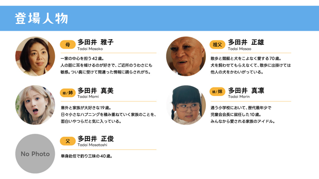 CMに登場する「多田井家」は、どこかで見たことがあるような親しみのある一家。家族それぞれの個性や異なる価値観の“ズレ”から、日々のちょっとしたすれ違いやハプニングが起こります。