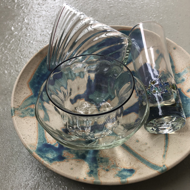 ヤチムーンにはカフェタイムをより楽しくしてくれる沖縄人気の作家によるプレートや、夏に向け人気が高まる琉球ガラスなどが並びます。
