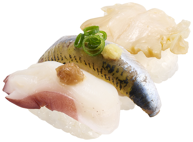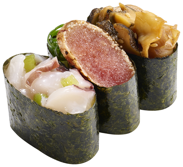 また、“水たこ”“いわし”“丘つぶ貝”が一皿で楽しめる「なまら北海道3貫盛り」や、“たこわさび”“炙りたらこ”“毛つぶ貝”が食べ比べできる「北海道軍艦3貫盛り」、流通量が少なく希少なハッカクを使用した「ハッカクとシマゾイの食べ比べ」が登場。