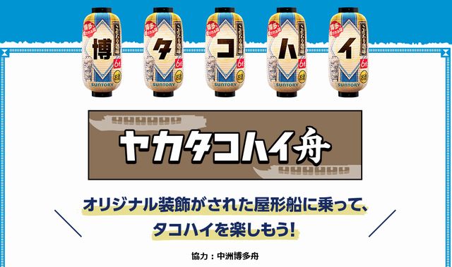 サントリー株式会社「こだわり酒場のタコハイ」は、より多くの方に「タコハイ」を楽しんでもらい、福岡・博多の食とにぎわいの魅力を全国へ発信することを目的に、地域との連携によるコラボイベント「博タコハイ祭」を開催します。