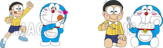 パッケージデザインは、タイムマシンの時空間を背景に、それぞれの食事を前にした二人のオリジナルイラストを使用。また、それぞれのフタにはドラえもんのイラストと、ドラえもんの「元気になる名言」をランダムで印刷しています。