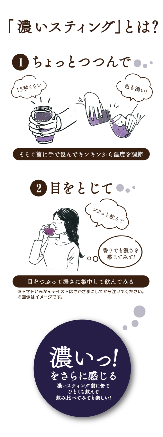 贅沢搾りプレミアムの濃さを体感「濃いスティング」を楽しめる有料試飲イベントです。本イベントに参加の上、会場風景をSNSに投稿した方に、贅沢搾りオリジナルグラスをプレゼント。