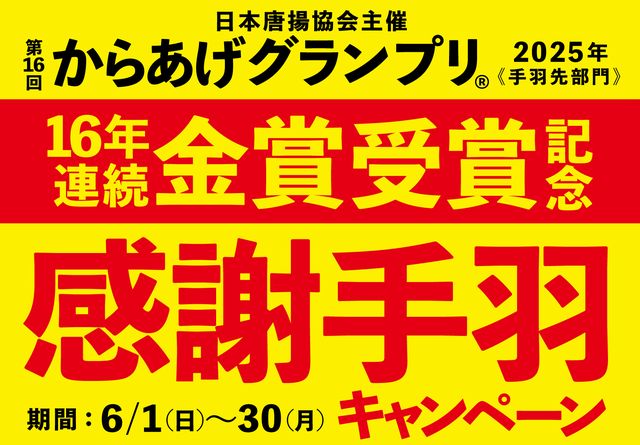 2025年4月9日発表の日本唐揚協会主催「第16回からあげグランプリ」の手羽先部門において「とめ手羽」が金賞を受賞し、16年連続で金賞受賞しました。