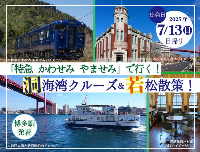 JR九州旅客鉄道株式会社は、2025年7月13日(日)に実施予定の、日帰り JR九州オリジナルツアー、「特急 かわせみ やませみ」で行く!洞海湾クルーズ&若松散策!を販売しています。