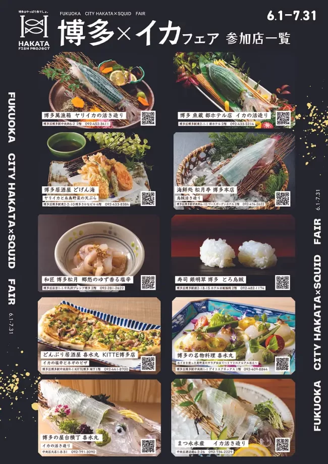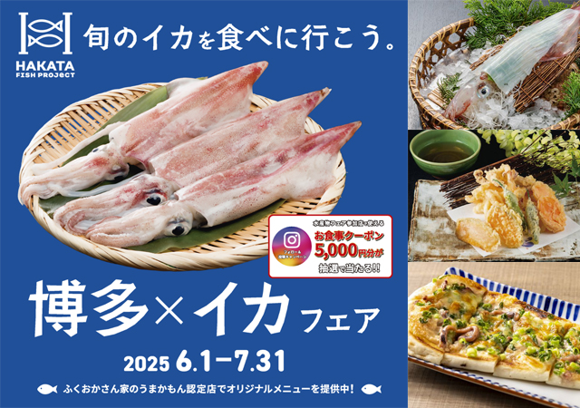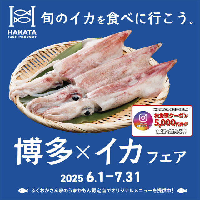 2025年6月1日(日)~7月31日(木)福岡市内の参加店舗にて、旬を味わう魚食普及フェア ≪HAKATA FISH PROJECT≫第1弾 『博多×イカフェア』を開催中。