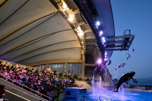 営業時間を21:00まで延長し、生きものの夜の様子を観察できます。夜景と一緒に楽しめるイルカショーや夜限定の音と光のイワシショーは必見です。ライトアップされたショーや寝ている魚たちに注目。