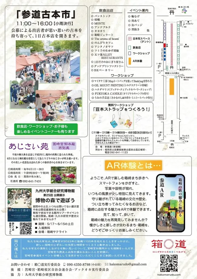 筥崎宮参道に古本ブースが80区画出現!ワークショップブースも!古本だけではなく、飲食ブースや子どもも楽しめるワークショップなど盛りだくさんな1日です。