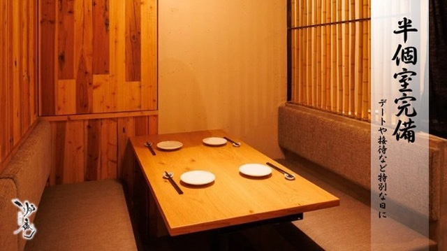 4~8名で利用できる個室席は、小規模な飲み会や宴会におすすめの席です。雰囲気にこだわったプライベート空間で当店自慢の逸品料理や豊富なドリンクをお楽しみ下さい。2時間飲み放題付きのコース料理を用意。気軽な飲みの場や、宴会にも使えるおトクなクーポンを多数用意。