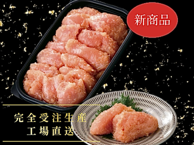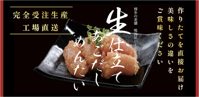 鳴海屋の新商品「生仕立てあごだし辛子明太子」業界の常識を打ち破る製造工程の明太子が登場!鳴海屋が、これまでの辛子明太子の常識を覆す、こだわりの逸品をお届けします。