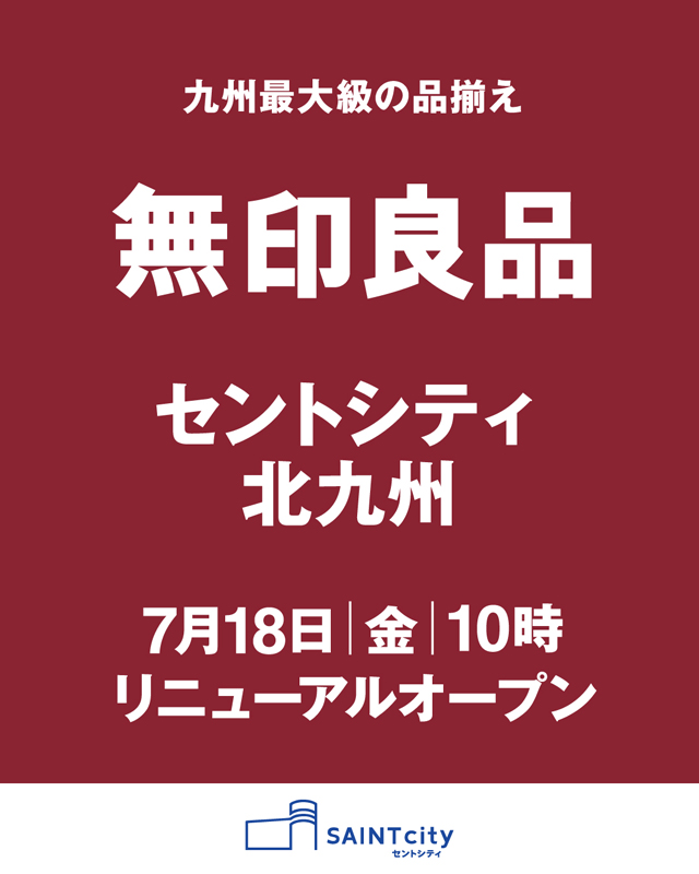 無印良品 セントシティ北九州(北九州市小倉北区京町3-1-1 セントシティ北九州1F)は、2025年7月18日(金)にリニューアルオープンします。