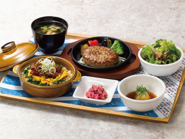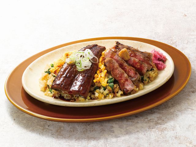 洋風うなぎご飯は、バターライスにうなぎのきざみとたまご、ケールをのせ、日本ワイン「山梨マスカット・ベーリーA」と山椒を合わせたオリジナル赤ワインソースで仕上げました。ロイヤルホストで人気の高い黒×黒ハンバーグは、おろしゆずぽん酢ソースでさっぱりと召し上がれます。うなぎとハンバーグ、2種の味わいを一度に楽しめる、フェア限定商品です。