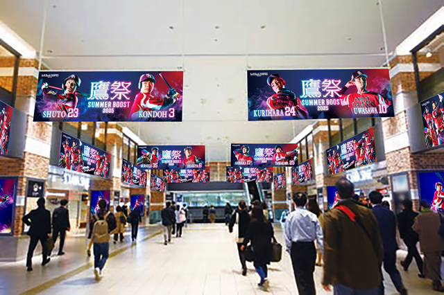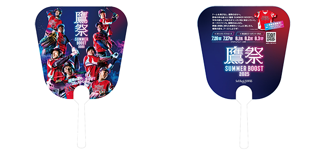 また、天神・博多エリアでは「鷹祭 SUMMER BOOST」ビジュアルの掲出やうちわの配布を行います。街中で鷹祭 SUMMER BOOSTの雰囲気を味わい、福岡の夏をブーストしよう!