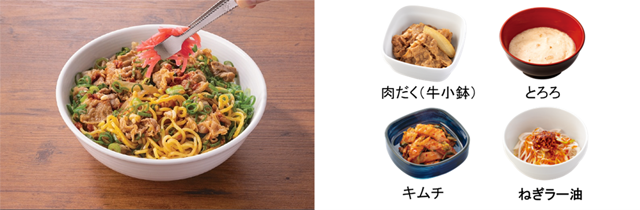また、シャキシャキとした食感がくせになるキムチやねぎラー油、より満足感の感じられる肉だく(牛小鉢)やとろろなどサイドメニューの中から自分好みの味わいや好みの食べ方を見つけてください。