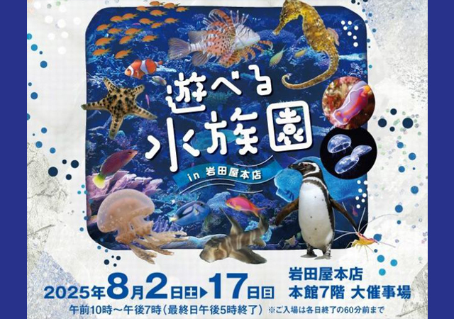 2025年8月2日(土)~8月17日(日)午前10時~午後7時(入場は各日終了の60分前まで/最終日午後5時終了)、岩田屋本店(福岡市中央区天神2-5-35)本館7階 大催事場にて、「遊べる水族園 in 岩田屋本店」が開催されます。