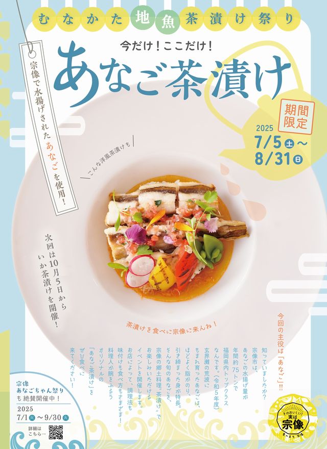 2025年7月5日(土)~8月31日(日)福岡県宗像市内と周辺の飲食店にて、むなかた地魚茶漬け祭り「今だけ!ここだけ あなご茶漬け」が開催されます。