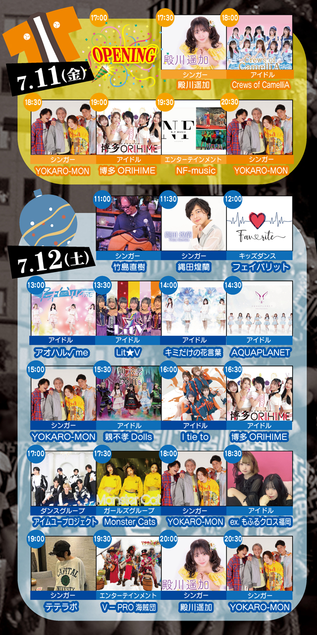開催時間は、7月11日(金)17:00~22:00 / 12日(土)~13日(日)11:00~22:00 / 14日(月)11:00~22:00(雨天決行、荒天中止)。