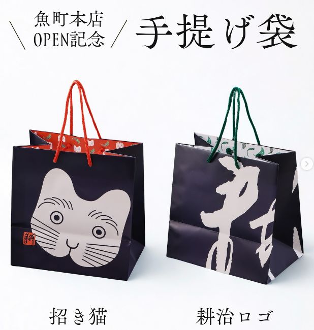 魚町本店の新たな門出を記念して、手提げ袋に新しいデザインが登場。