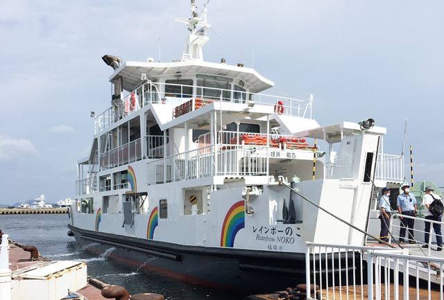 能古島には、フェリー(片道230円)で行くことができます。姪浜渡船場から能古島渡船場まで約10分。1時間に1往復運航していますので、いつでも利用することができます。