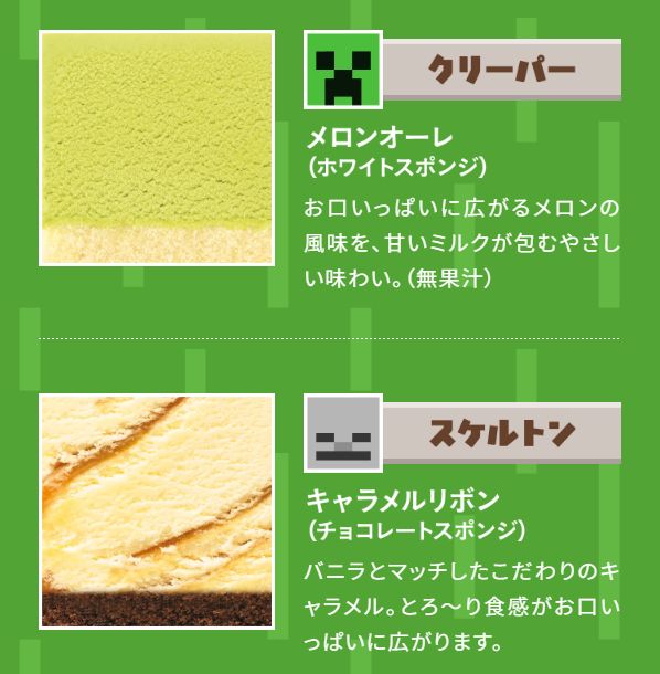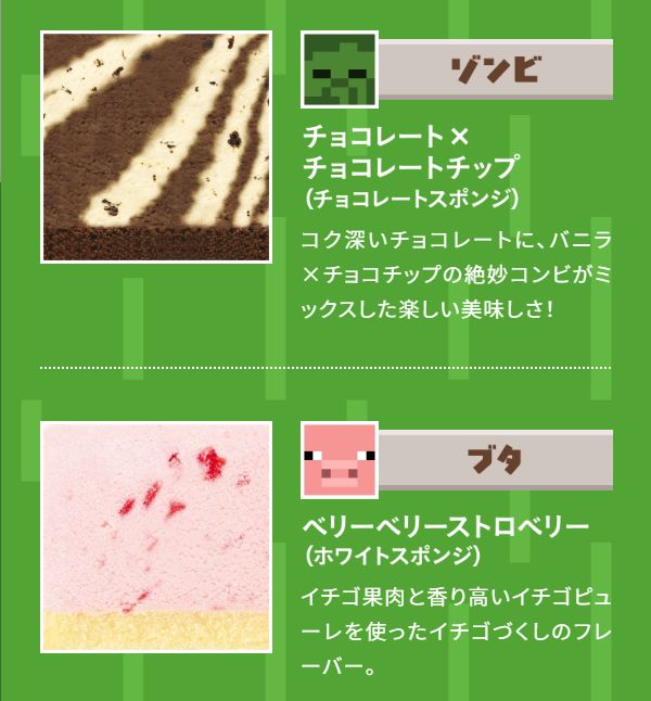 チョコレートは、プレイヤーに近づき爆発する「クリーパー」、見た目がなんともキュートな「ブタ」、目が合うと襲ってくる「エンダーマン」、爆弾の「TNT」、夜や暗い場所に現れる「ゾンビ」、遠くから矢を放つ「スケルトン」が大集合!
