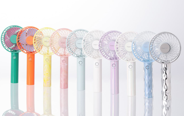 定番モデルの「ハンディファン」は持ち手のニュアンスデザインが調和したトレンド感溢れるウェーブデザインや、ポップなビタミンカラーをベースに羽をバイカラーで仕上げた遊び心たっぷりのデザイン、シアーなミルキーカラーにマーブル模様が涼しげなデザインなどラインアップ。