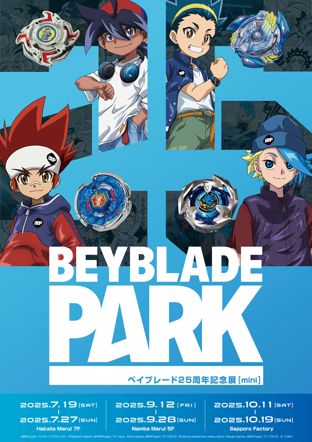 2025年7月19日(土)~7月27日(日)10:00~21:00、博多マルイ(福岡市博多区博多駅中央街9番1号)7F イベントスペースにて、ベイブレード25周年記念展「BEYBLADE PARK mini」が開催されます。