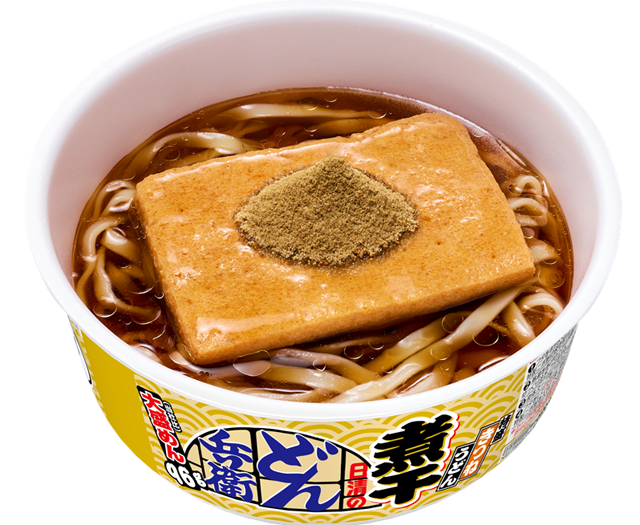 煮干しだしをベースに鶏のうまみをきかせた「液体スープ」と、焼き煮干し粉と七味が入った「特製ニボ粉」で仕上げるつゆは、濃厚でコク深い味わいが特長です。具材には、「どん兵衛」でおなじみのふっくらとしたおあげを入れました。