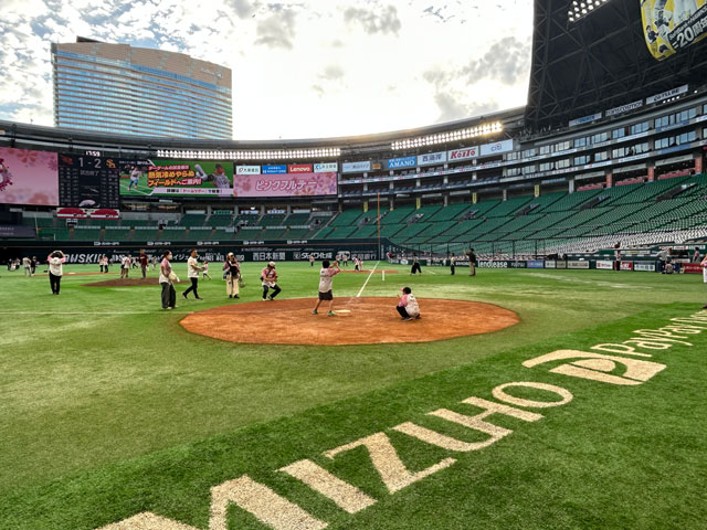 試合の熱気が残るグラウンドで、選手気分を味わいませんか?「試合終了後フィールド体験コース」では、内野でベースランニングやお立ち台での記念撮影、外野では開放的な空間でキャッチボールを楽しめます。