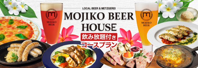 MOJKO BEER HOUSEのオープンにふさわしい、人気のメニューをぎゅぎゅっと集めたおトクなコースプラン。飲み放題90分(席120分)で、二人より、2日前の予約をお願いします。一人¥6,500(税込)