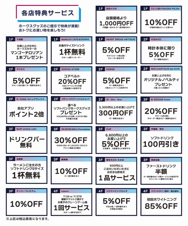 ホークスグッズのご提示で特典が満載!