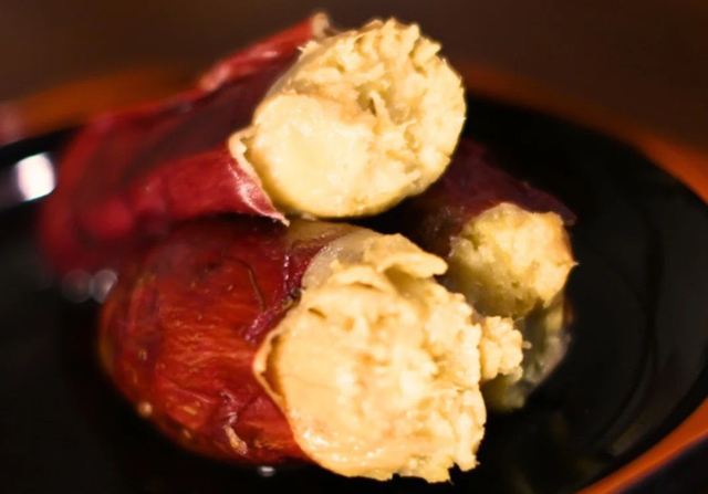6ヶ月以上長期熟成させ、芋本来の甘みを引き出し、独自の水分量と温度で長時間焼き揚げる。それは、蜜がたっぷり溢れ出すほど甘く、素材の力を最大限に引き出した、極蜜焼き芋。