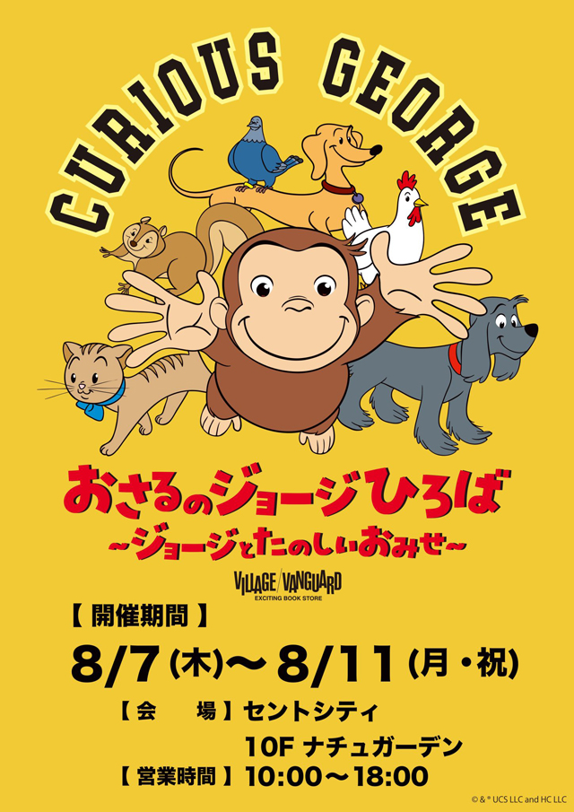 2025年8月7日(木)~8月11日(月・祝)10:00~18:00、セントシティ(北九州市小倉北区京町3-1-1)10階ナチュガーデンにて、「おさるのジョージひろば ~ジョージとたのしいおみせ~」が開催されます。