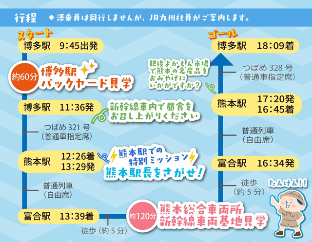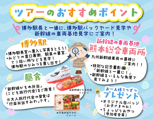 ツアー名:お子さま連れ限定企画!博多駅長と行く!夏休みの九州新幹線 大ぼうけんツアー