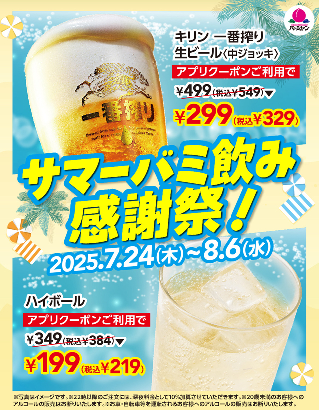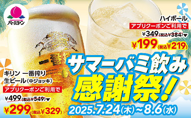 株式会社すかいらーくレストランツが運営するバーミヤンでは、2025年7月24日(木)~8月6日(水)「サマーバミ飲み感謝祭!」を開催中。